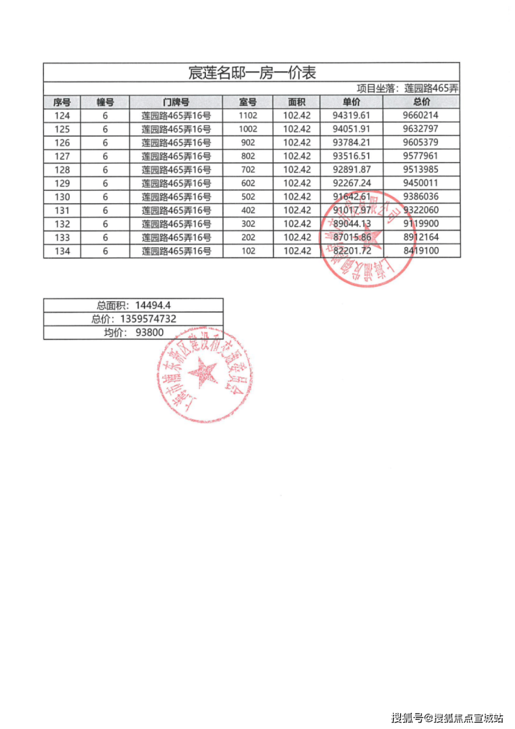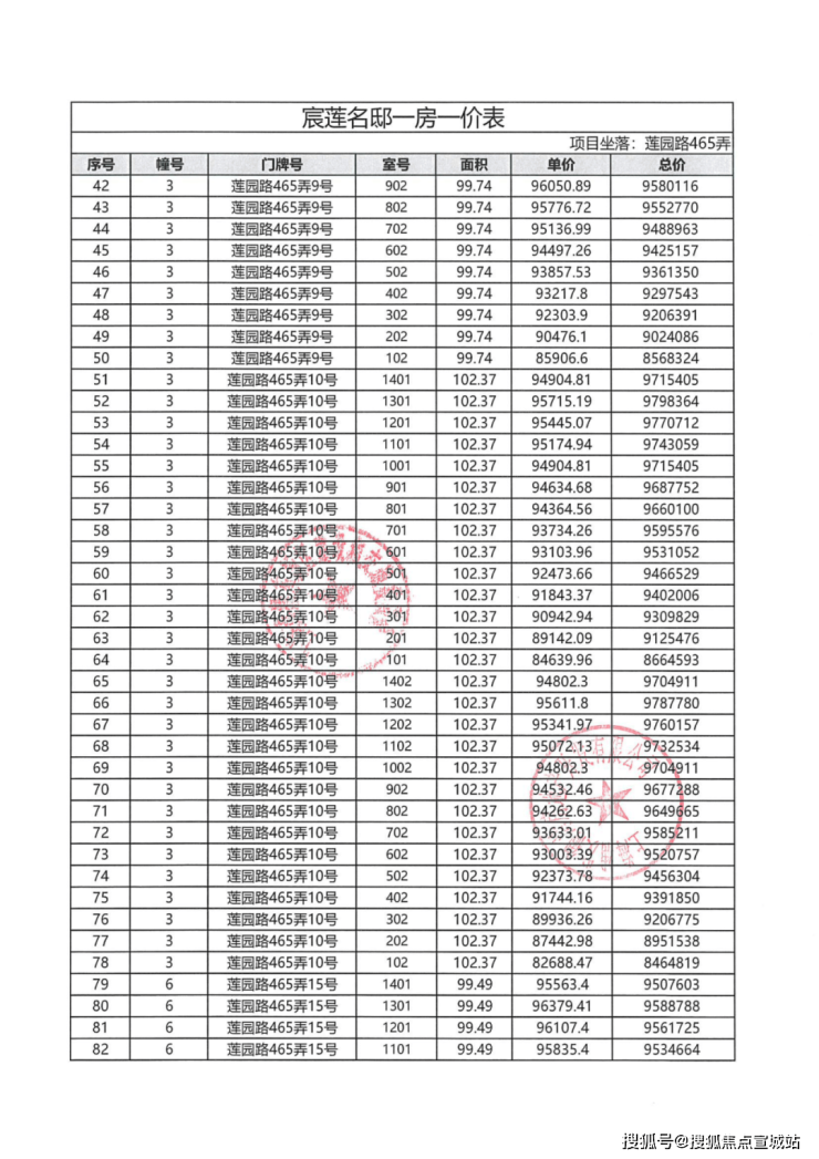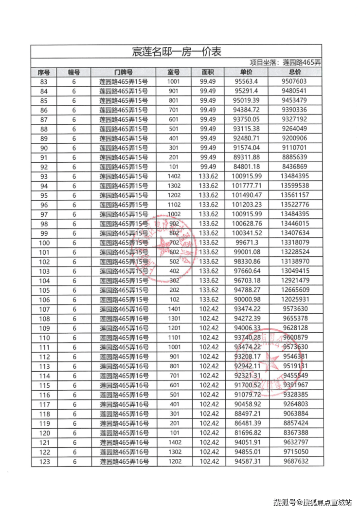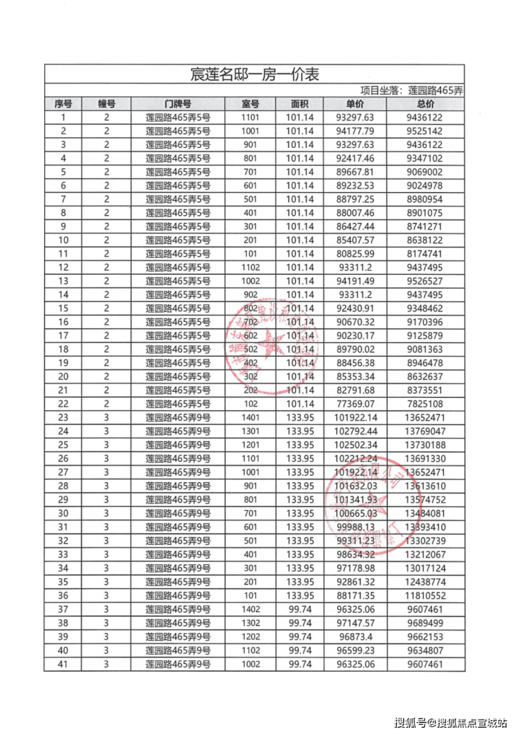 一房一价表: