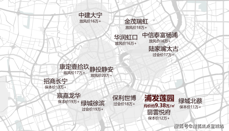 反观浦发莲园,均价约9.38万/㎡,与北蔡地王未来售价相比,价差近2万/㎡。
