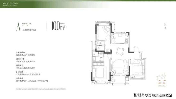 建面约100㎡满分三房