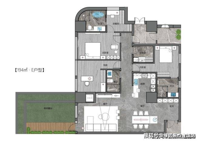 181m²、194m²、197m²、204m²各一套(通燃气),总价996-1360万,赠送15-50m²露台不等。
