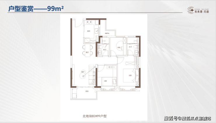 99㎡三房两厅两卫:LDKB一体化设计+主卧套房,奢阔阳台揽景,套均270万1。