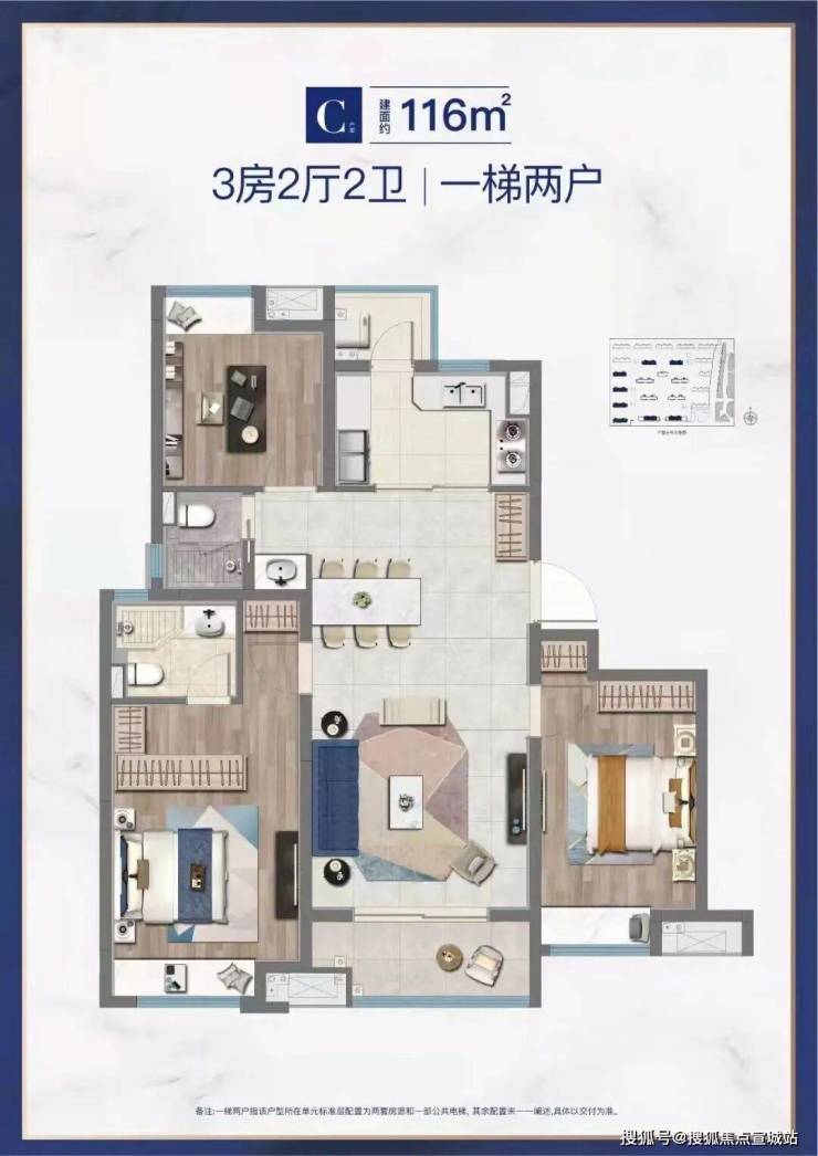 建面约116㎡丨3房2厅2卫丨1梯2户丨总价约350-380万