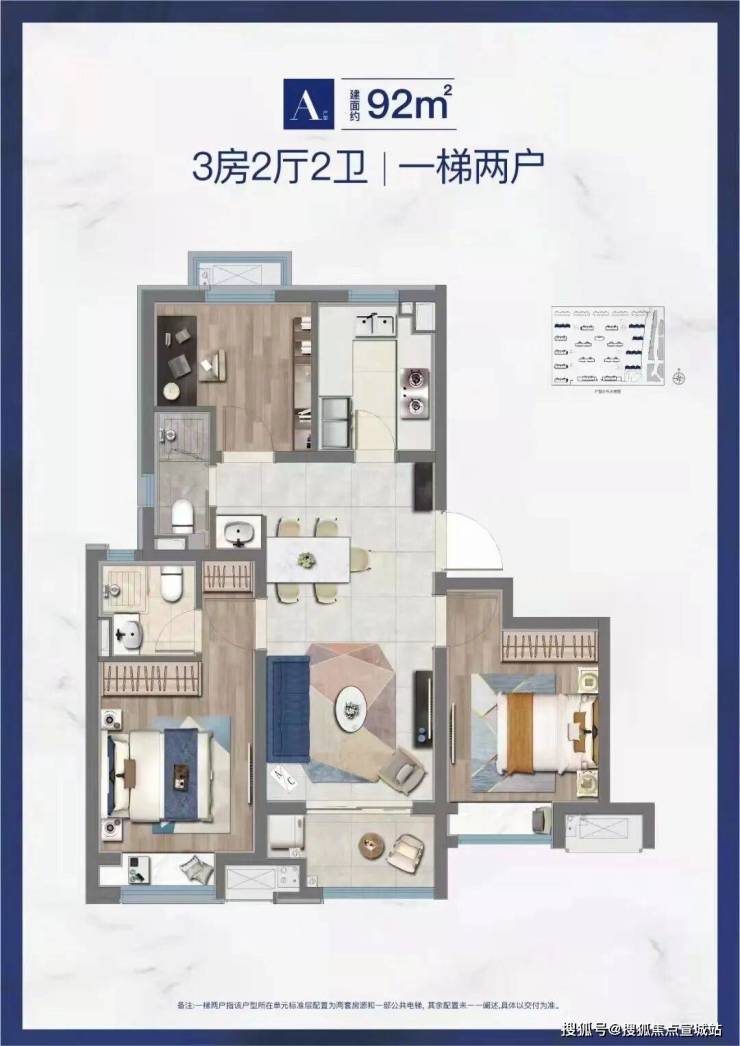 建面约92㎡丨3房2厅2卫丨1梯2户丨总价约300-330万