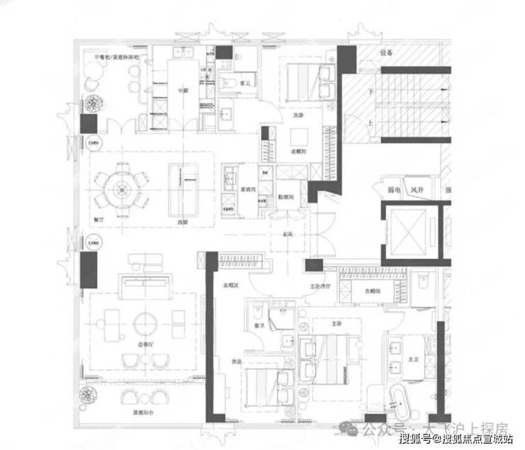 项目地面无车位,全人车分流,主要出入口位于南侧德州路,车行出入口分别位于德州路、济明路、德恒路;所有住宅楼栋首层全架空,设置有大面积的下沉式庭院、地下会所以及风雨连廊!