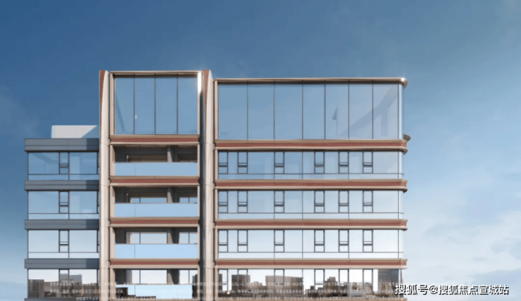 全景舱立面:外立面采用竖向线条交织顶冠造型,南向铝板与玻璃占比超 90%,历久弥新。