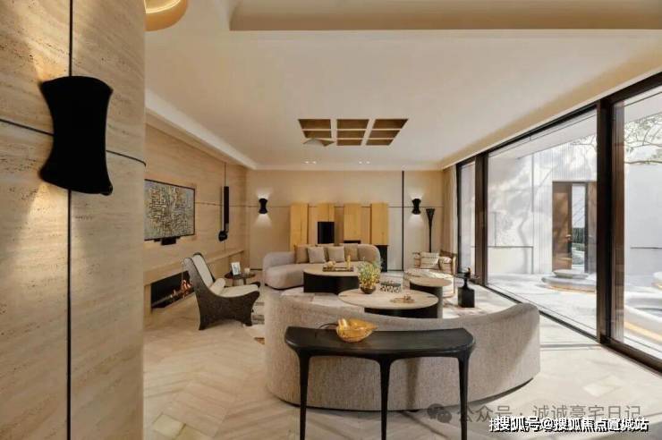 这一层更聚焦于私谈、影音、娱乐、品酒、饮茶,深沉又静谧。近6米高的垂直挑空玻璃壁炉矗立于眼前,如同一件令人赞叹不已的大型雕塑装置,它弱化了空间中的大理石承重柱,将其纳入共同构成一个完整的全新的装置,集功能性与艺术性于一身。