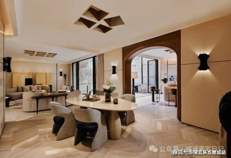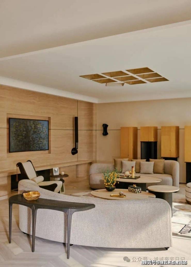 顺着弧形木质楼梯抵达地下空间,仿佛游走在一曲流动的乐章中。一切都共同呼应着水的特质,传递着低调隐逸情怀与圆融个性。