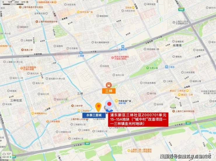 该地块为三林镇金光村“城中村”改造的重点项目,紧邻地铁11号线三林站,规划一条12米宽公共步行通道,连接社区与地铁站;同时周边有中房金谊广场、三林中学、东方医院等生活配套。