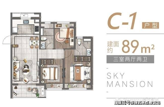 除了建面约89㎡的洋房,建面约83~89㎡高层户型也各有所长,均是三房设计,无论是从结构布局,还是空间利用皆相得益彰,承载一家人的美好生活。高层户型如下: