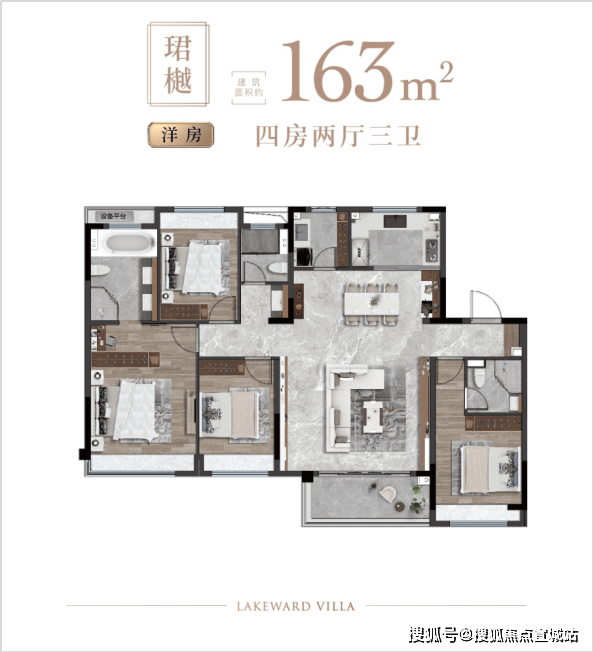 洋房(133-163㎡四房):163㎡四房三卫,南北通透、动静分区,大横厅 + 阔景阳台,改善优选。
