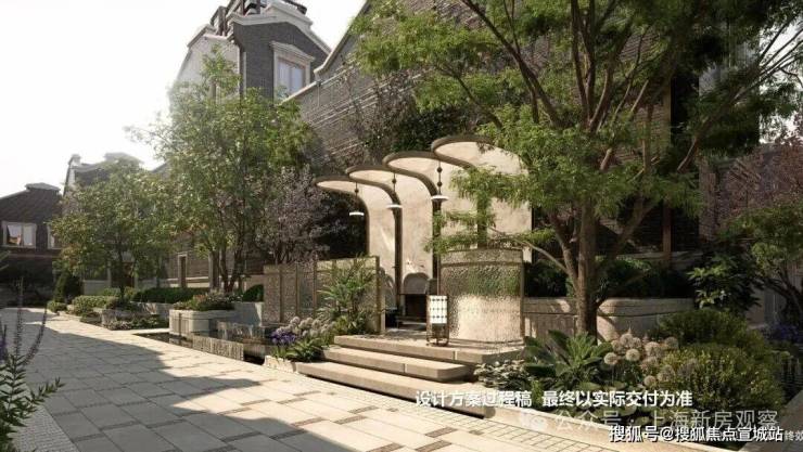 特别设计了八大映象典藏场景景观节点,有百年梧桐下的静谧巷道串联各景观节点,还有充满文化积淀的海派艺术庭院等,营造出精致、典雅的高阶生活氛围。