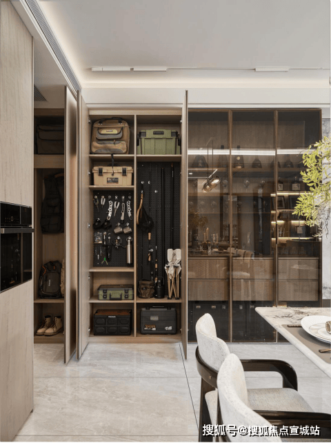 保利·海上瑧悦约130㎡的空间实地模拟居住中会出现的收纳场景,打造约2.25mx2.4m的超体量玄关柜,为生活扩容,可容纳约56个20寸行李箱……,而玄关柜、岛台、卫生间镜柜、主卧衣帽间等空间,把更多隐藏空间打造成超级收纳功能,让未来的生活井井有条。
