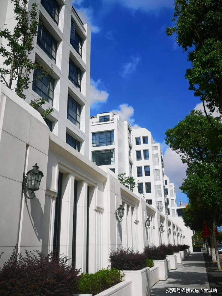 纯白的立面配以法式铁艺大面积落地窗,外立面采用石材+铝板设计,使用国外进口原料,造价高昂,精致美观,历久弥新。