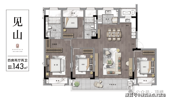 豪华主卧套房,奢阔尺寸满足更多生活理想。步入式衣帽间、三分离式双盆台带浴缸独卫,给予二人世界更多的尊崇质感。