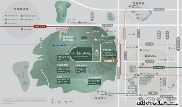 交通出行:周边有中环西线、何山路隧道、太湖大道、有轨电车 1 号线,还有规划中的地铁 9 号线。