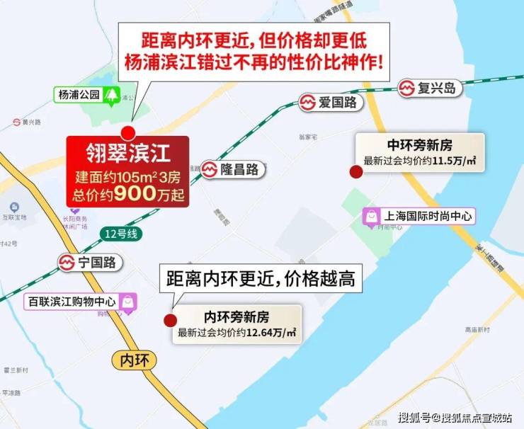 一方面,项目距离内环直线约800米,是目前整个杨浦滨江距离内环最近的项目之一,但项目的均价却不到约11万/㎡,总价约900万起。