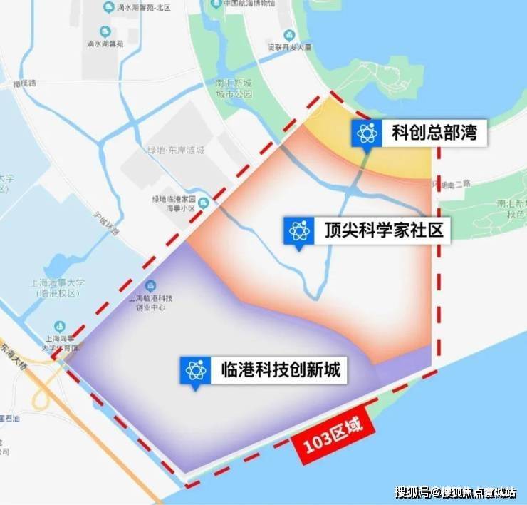科创总部湾: 已经确认有22家开发主体,清一色央企的豪华阵容,其中中建总部基地、中国铁建临港大厦、临港光明中心、长城建设集团总部基地、中交三航临港大厦、润友科技长三角(临港)总部等项目已开工建设。