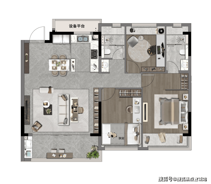 藏峯117㎡:主卧套房设计,约6.6米宽景阳台