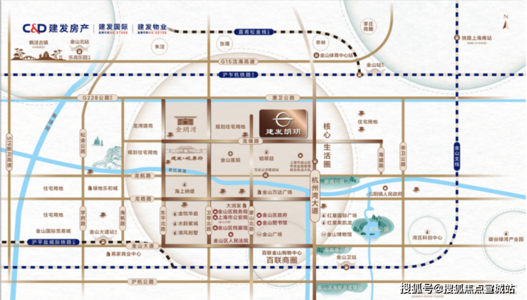 “上海湾区”高能起点上,金山新城正芯以成片式住宅开发,汇聚政务、商务、生活等顶层资源,构建约1.8平方公里“九宫格”核芯生活版图,驱动金山新城强势崛起。