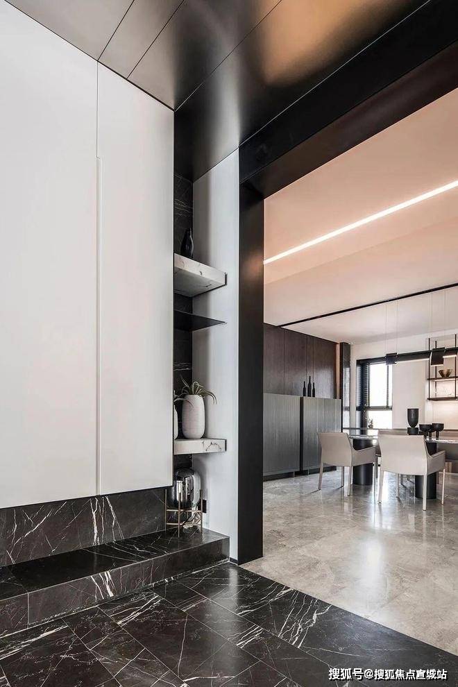 项目玄关柜、餐边柜、S墙、岛台及卫生间门后柜等全部交付,把更多隐藏空间打造成超级收纳功能。