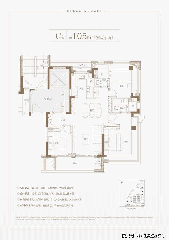 户型规划:主力户型为建面约92-143㎡的3-4房,边套户型设计270°广角窗面,优化采光与视野