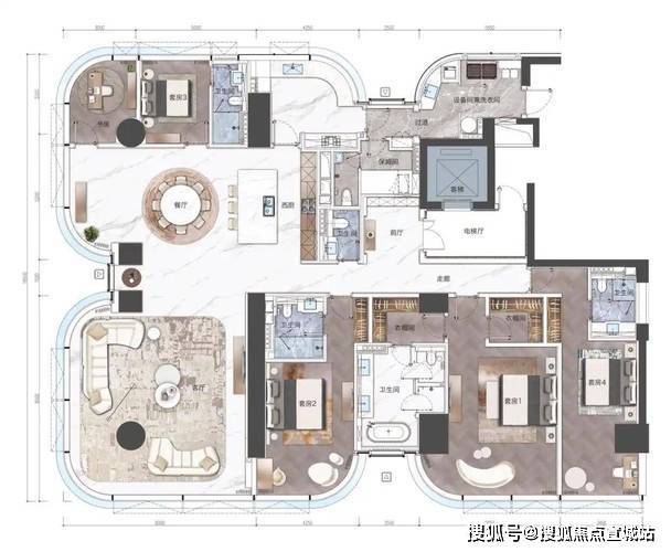 产品类型:涵盖 4 幢大平层、2 幢超甲级写字楼及 1 幢 Mall + 总部办公,形成超级园区。