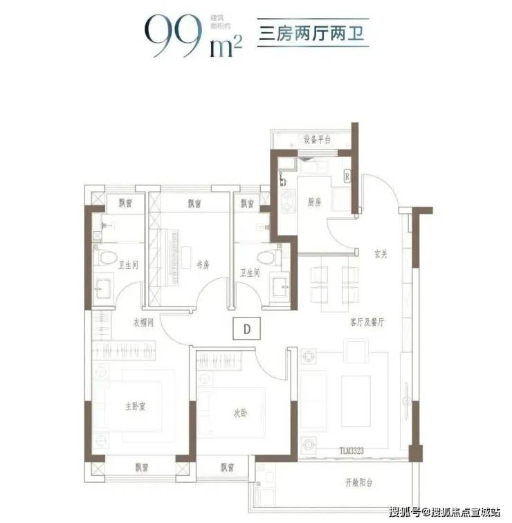 户型特点:3开间朝南,全屋阳光充足;L型厨房转角移门设计,最大化空间视野;四飘窗设计,通透空间享受;动静分区,亲密有度;套房式主卧,容纳私谧生活点滴;