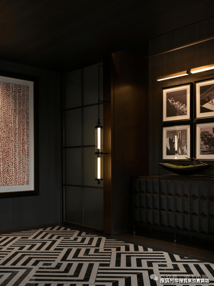 空间主轴在于尊贵华美的氛围营造,运用光影变化,拼花石材等多种高档材料的组合,艺术壁灯的点缀,勾勒出精致高雅的空间美学。