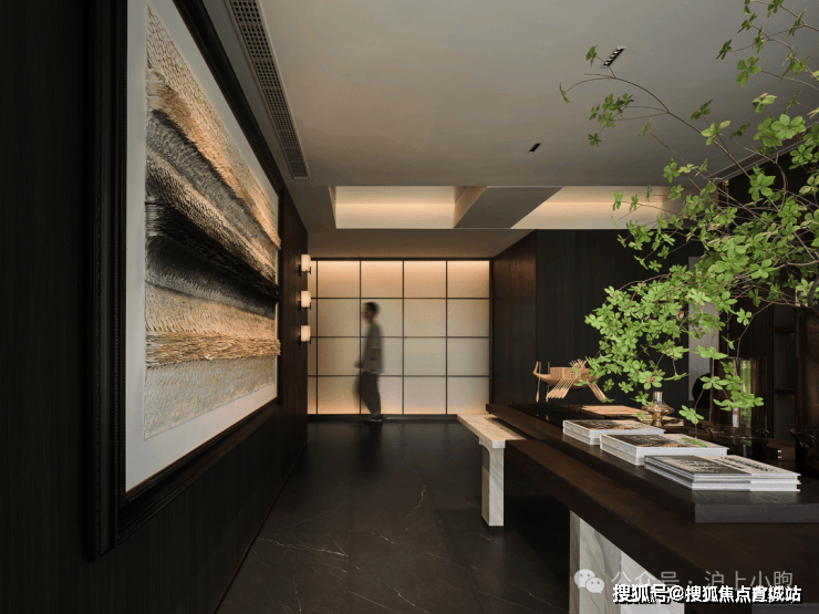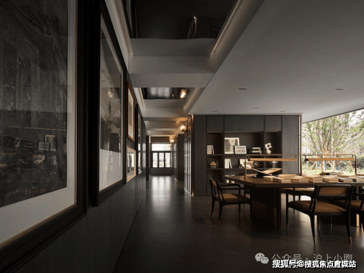 李益中空间设计联合万科,洞察高阶社区的生活方式,将城市生活与万科品牌理念相结合,以社区文化和创新精神为依托,呈现了一个集文创交流、书法画室、艺术展厅等多重功能的泛会所式架空层。