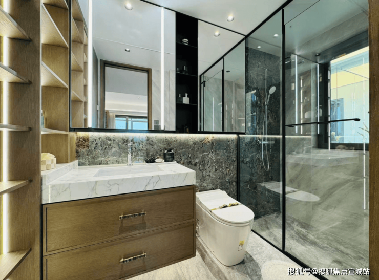 ✔️收纳也有小细节:在卫生间的侧面和主卧门背后、大衣柜侧面都预留了放浅柜的位置,收纳日常高频使用的各种小物件会很实用。