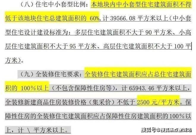 根据土地转让合同要求显示,项目规划 住宅套数下限656套,全部装修交付,装标2500元/m²(集采价)