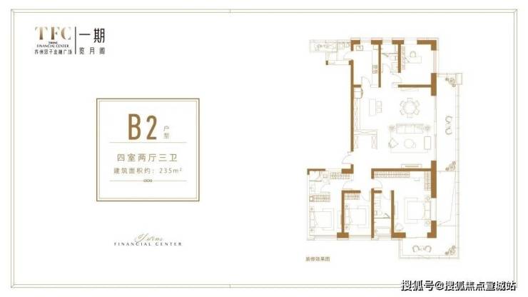 主力户型:105㎡(2房)至235㎡(4+房),主打四居室,空间方正且采光面大