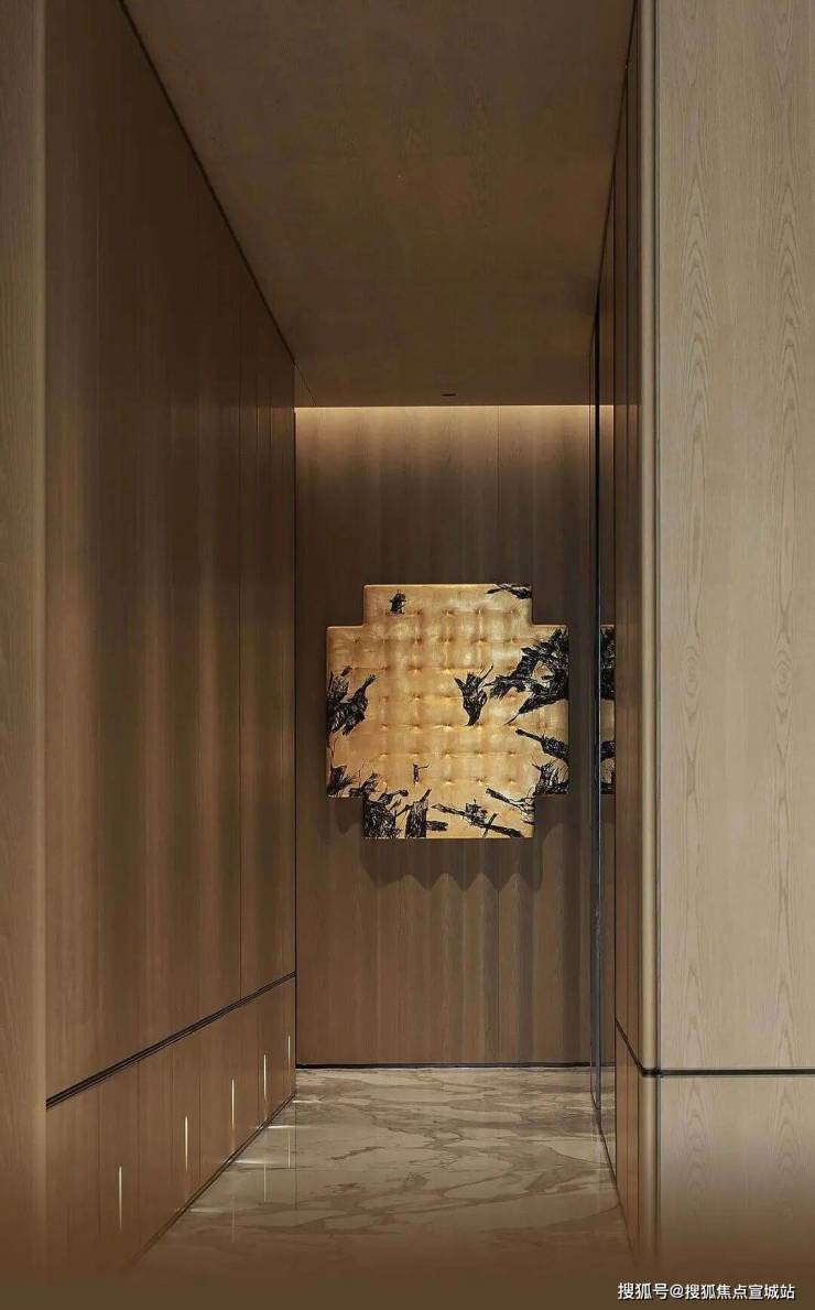 从高档材料的运用到开放式的空间布局,全屋奢石通铺,入户门厅匹配的是纹理低调的超白洞石搭配定制尺寸卡门,一眼看去,安全感满满。进门后,意大利进口石材全屋通铺,每一处地砖流水型纹路都能对应,需要提前至少2年预定的梅西同款进口芬迪白石材被用作电视背景墙,阔绰感不言而喻。
