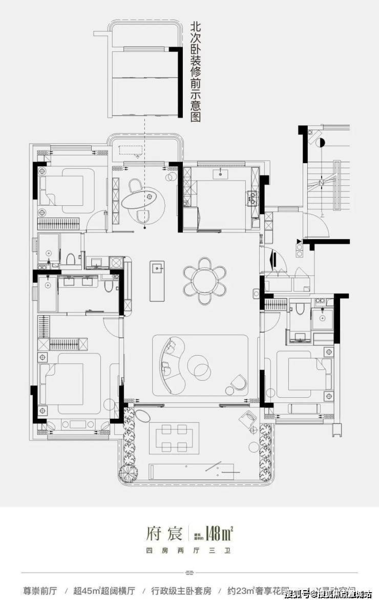 户型面积格局核心特色适合人群约100㎡3室2厅2卫约15㎡露台花园,三开间朝南,竖厅设计双阳台配置年轻家庭/首次改善约120㎡3室2厅2卫6米大横厅,约17㎡露台,动静分区明确品质改善家庭约148㎡4室2厅3卫LDKB一体化空间,约23㎡空中庭院,行政级主卧套房多代同堂家庭