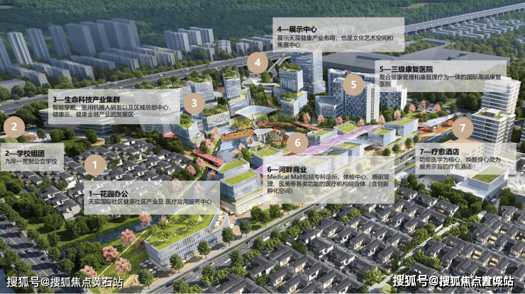 天宸国际社区约30万方上海都市国际作品,分东、西两个地块开发,项目涵盖:合院别墅、5A甲级写字楼、酒店、三级康复医院、九年一贯制公立学校以及4万方的商业街等,不出家门即可享受完善的高端生活配套。