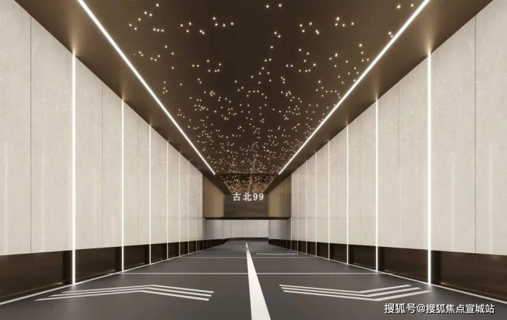 同级都在卷公区,古北99公区也十分硬核,宽境社区大门、四季景观,酒店式入户大堂/地库大堂、艺术星空顶车库入口...该有的仪式感一个都不落。