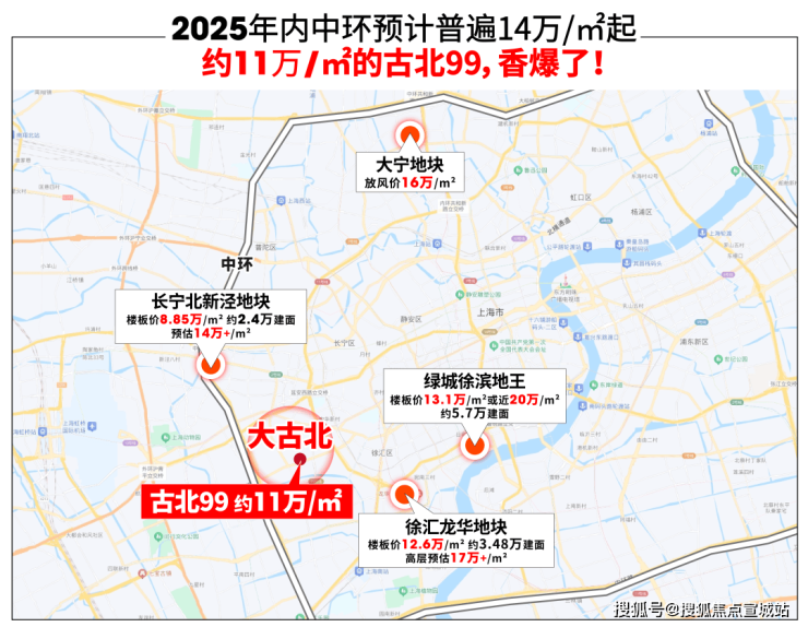 2025年同环线基本14万/㎡起步,而古北99只要约11万/㎡。