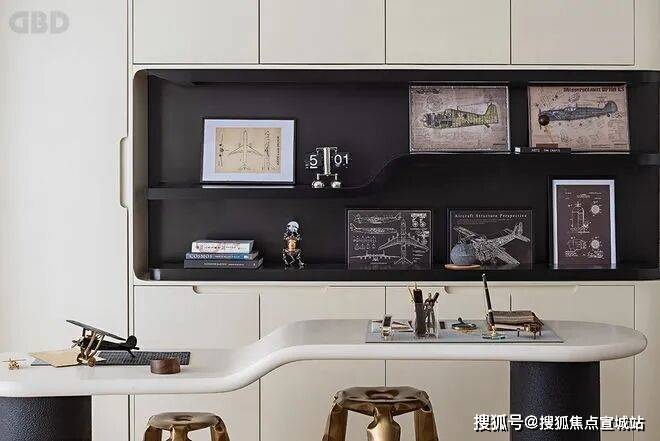 The integration of interior design and architectural aesthetics reveals the delicate spatial structure in the space. The aircraft haze map on the niche and the aircraft model on the table seem to be more able to feel the infinite dreams in the space.