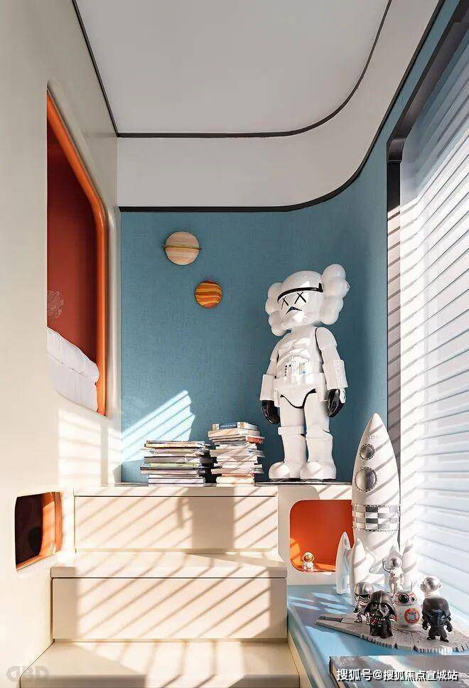 海珀云庭售楼处营销中心:400-8828-814海珀云庭售楼处电话/地址☎:400-882-8814(开发商热线)儿童房的房间当中依旧保留了同志的童真理念,大量的毛绒玩具和手办都能够透露出儿童的喜爱。大量的行星形态以及飞机模型展示出空间当中的翱翔与梦幻。