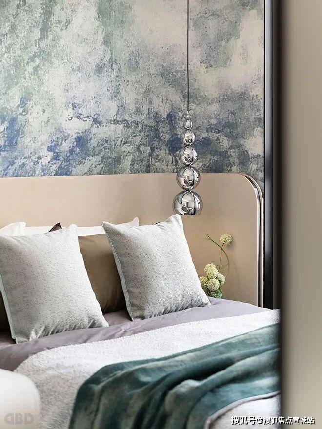 There are not too many decorations in the bedroom, and I draw the theme with exquisite background words. Below the colour of the space foil, it seems to also can feel the comfort in the space.