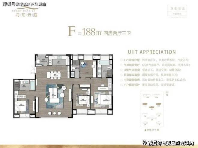 昆山海珀云庭售楼处电话☎:400-8828-814(售楼处预约看房热线)作为项目最大户型,建面约188㎡户型空间尺寸最阔绰,同样是四开间朝南+户户飘窗设计,南向6.5m宽厅连通交互式餐厨空间,空间更加宽敞明亮;主卧套房设计,宽敞的步入式衣帽间直击女主人的内心,同步设有双人台盆,私密性更强。