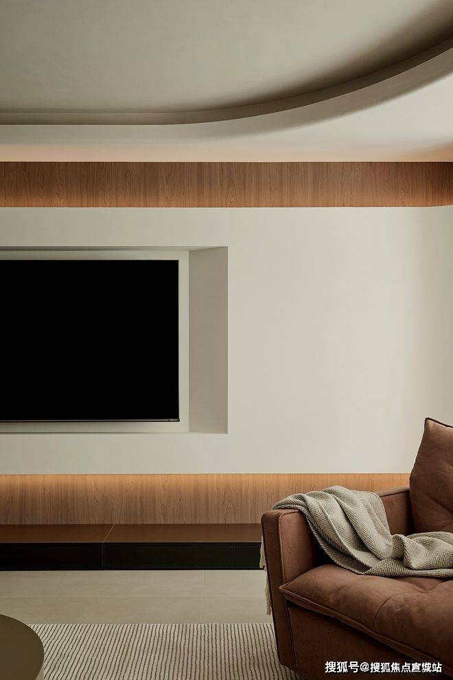 无主灯设计巧妙勾勒出空间层次,光线柔和又高级。白+原木的电视背景墙,高级质感扑面而来。