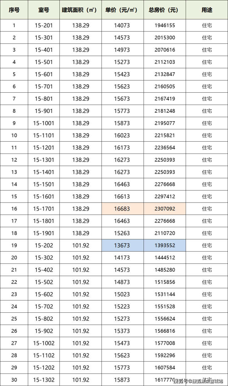 最高单价:约 16683 元/㎡