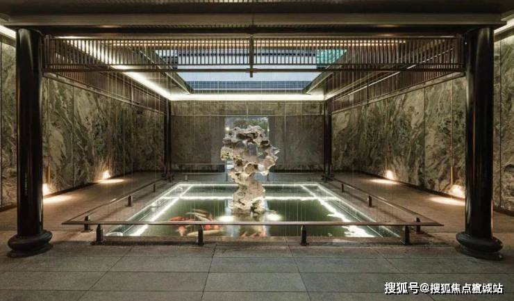 采用了四水归堂,水聚天心的空间设计理念,展现开合有序的空间变化,将光、风、雨、雪等自然元素融纳其中,当身处院内,与自然的对话也在这四方院内悄然发生,将中式韵味表达的淋漓尽致,给业主们带来富有仪式感的归家体验。
