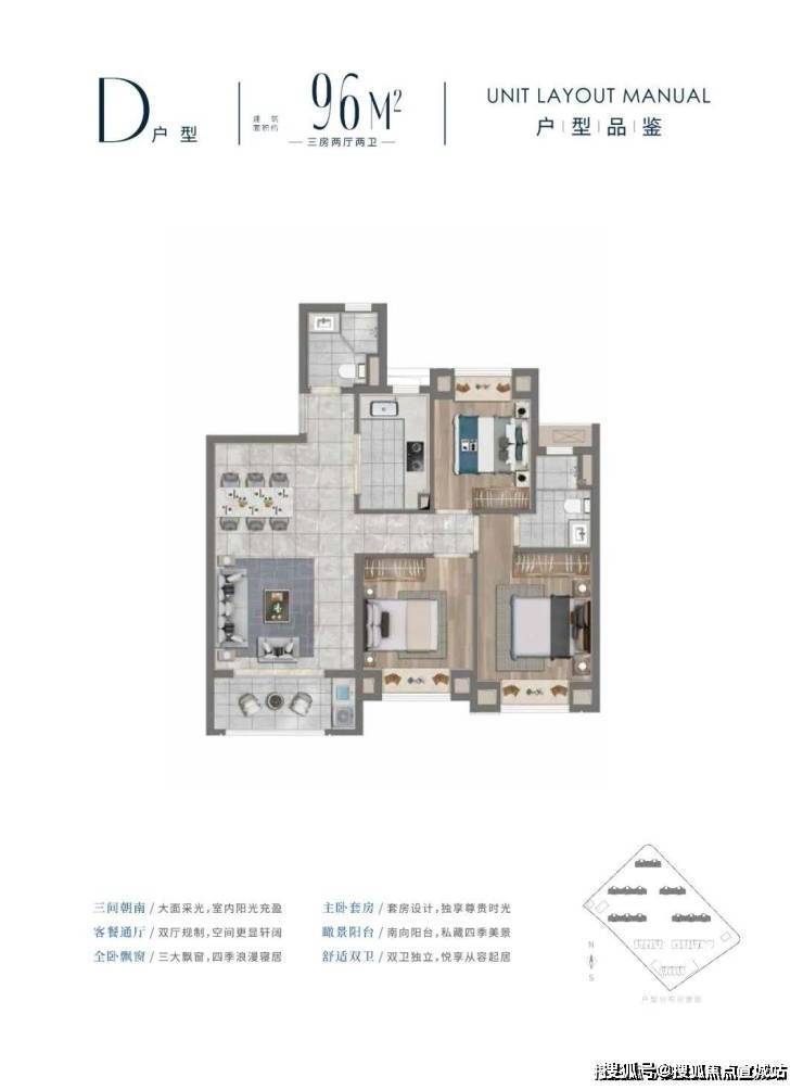 户型特色:所有户型均做到方正格局、动静分离,南北通透且全明设计,3.1 米的层高远超市场常见的 2.9 米标准,部分户型还标配中央空调。