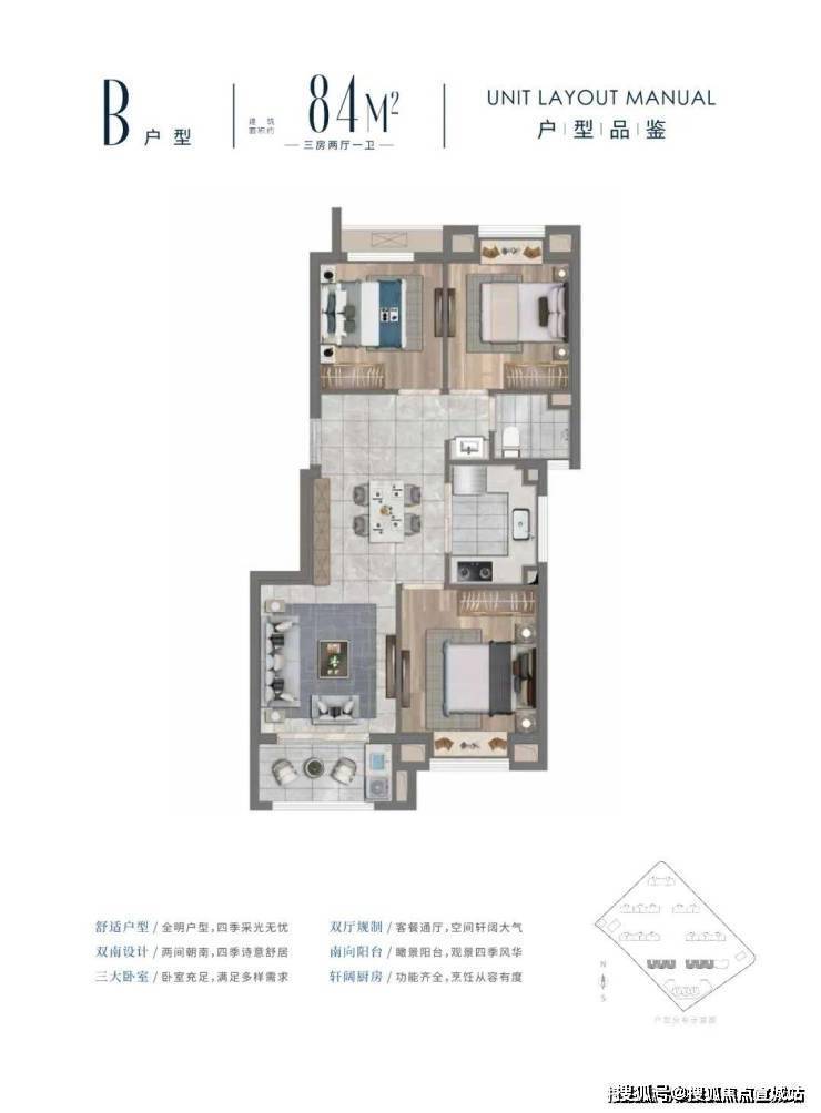 🏠产品介绍:在售面积约84-95㎡三房