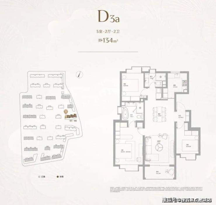 二室户型:建面约102㎡,主力为最后批次小户型,仅少量在售