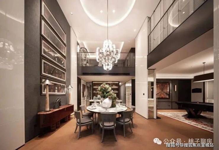 还有客厅层高也做到了约3.9米,比很多商业大平层还高,在这次更大的样板房中,这样的超层高加持下,不管气场还是功能上,更显气派。