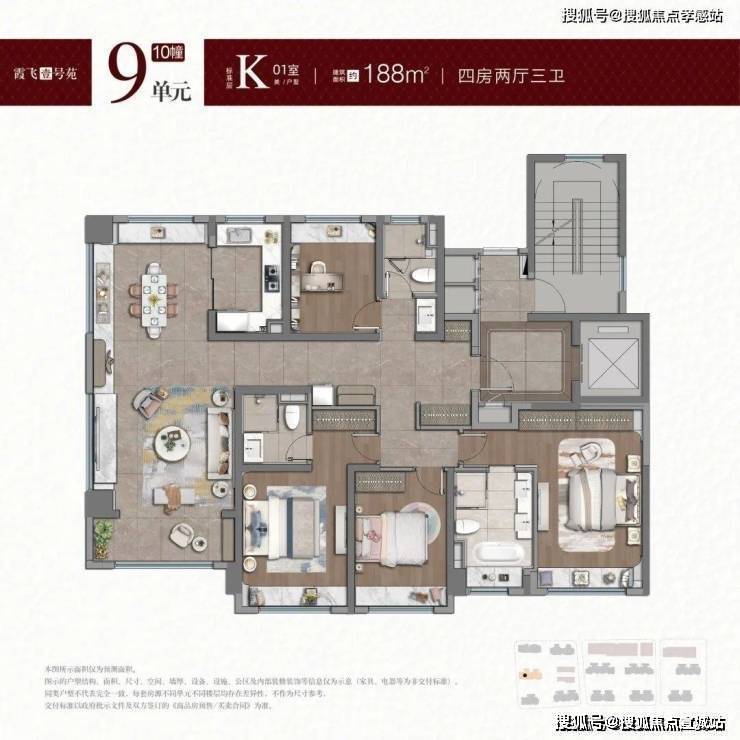 我们以建面约188㎡户型为例来解读: