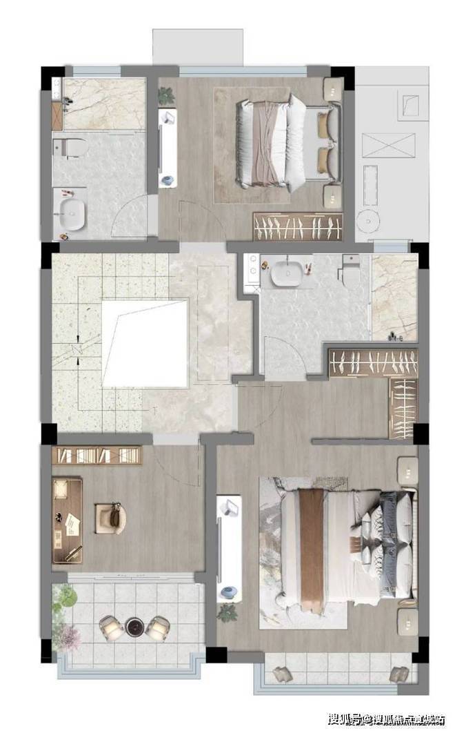 交控和悦里售楼处电话☎:400-882-8814(预约热线)✔✔✔比较用心的是,隔断露台的墙,是非承重墙设计。也就是说,装修时可以考虑采用落地窗,让主卧变成一间270°采光的全明卧室。